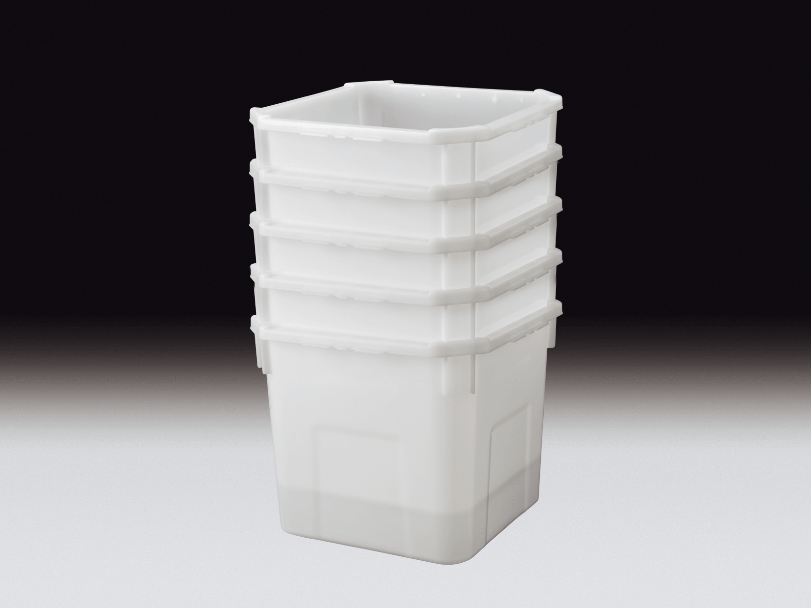 ・ステリテナーを内容液入りで段積み保管ができるプラスチック製外装コンテナー。