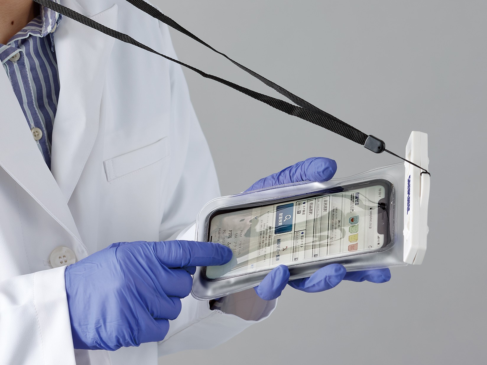 ・ラボ内へのスマホを持ち込む際は、このポーチ入れてアルコール消毒することで、ラボ内の汚染を軽減できます。