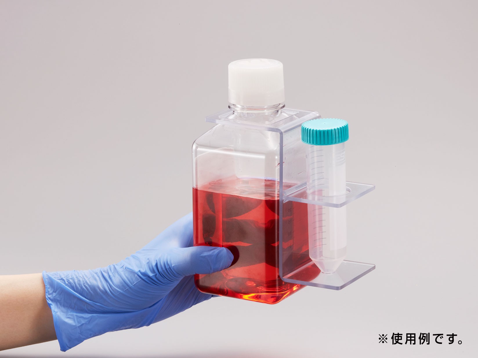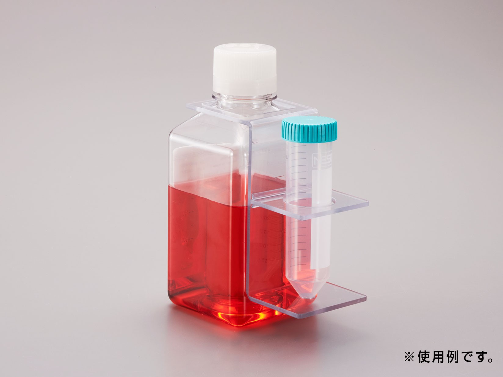 ・500ml試薬ボトルの口元に装着して使う、遠沈管ホルダーです。50ml遠沈管が最適ですが、15mlタイプにも使えます。