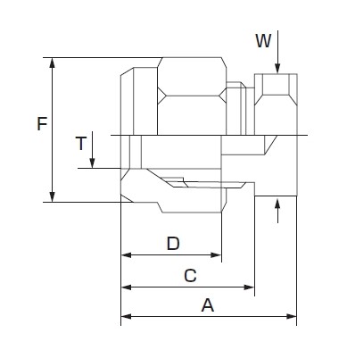 | 品番 | A | C | D | F | W | T適用チューブ外径 (mm) |