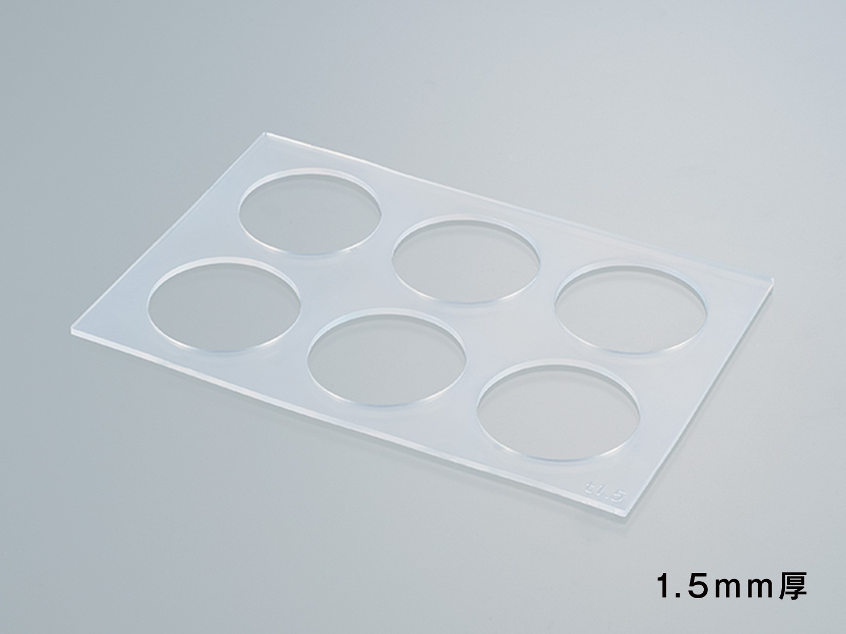 灌流アタッチメント6ウェルプレート用のかさ上げシート。立体的な細胞培養など、アタッチメントの天井高さを変えたい時に使用します。